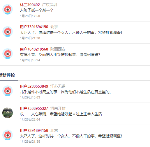 现实惨烈地呈现在众人面前,可大家却不敢相信自己的眼睛:在如此“天平盛世”下,竟然还会有这样的足以挑战正常人认知、刺痛文明人视线的“蝼蚁”?一直到近日“铁链女”消失,中共元帅叶剑英的孙女叶静子也仍在震惊地表示,“21世纪还存在这么原始行为,人性去哪里了?”